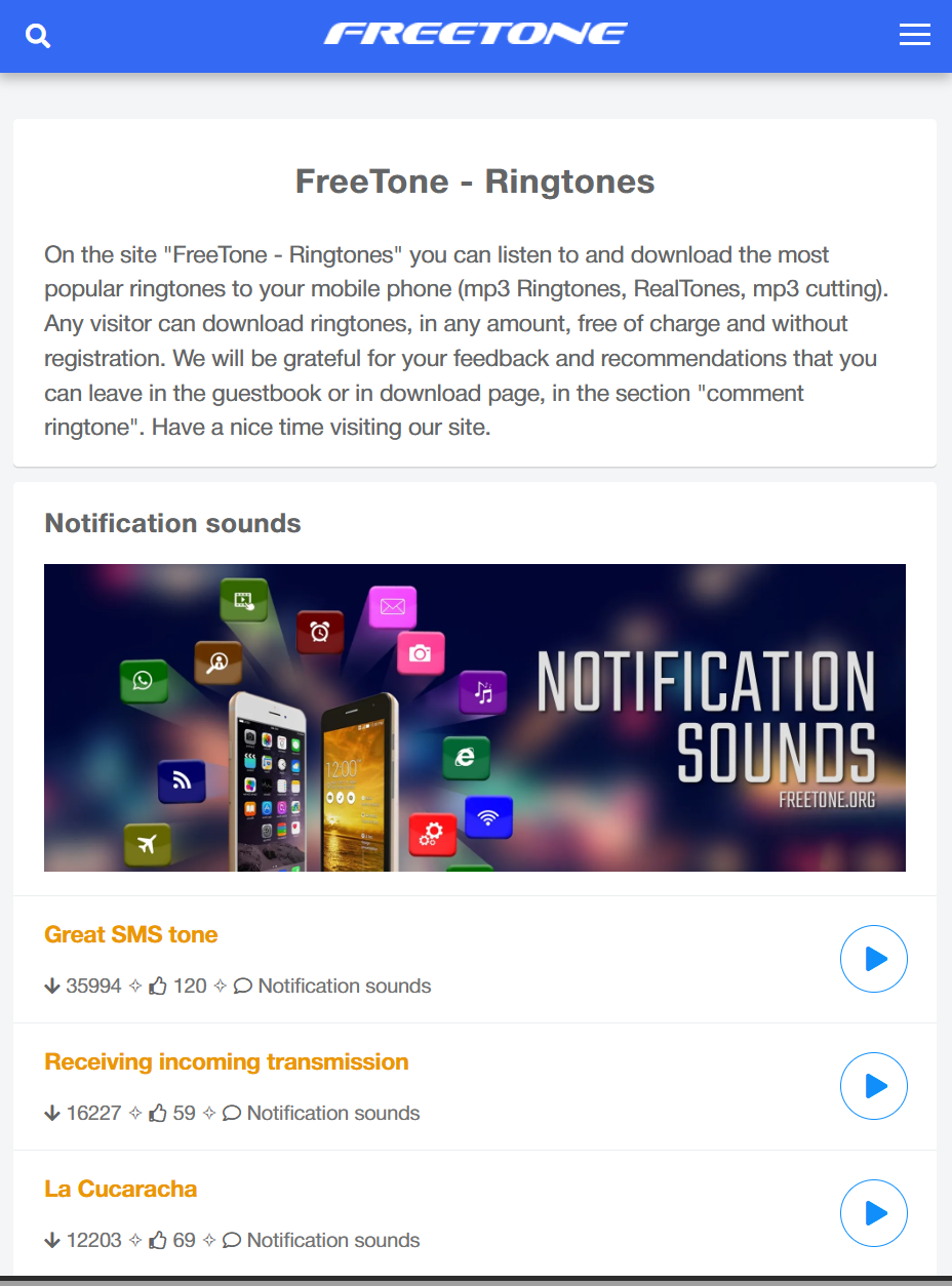 FreeTone - is the site where you can download for free the most popular mp3 ringtones for your mobile phones (realtones for cell phone 2025).
