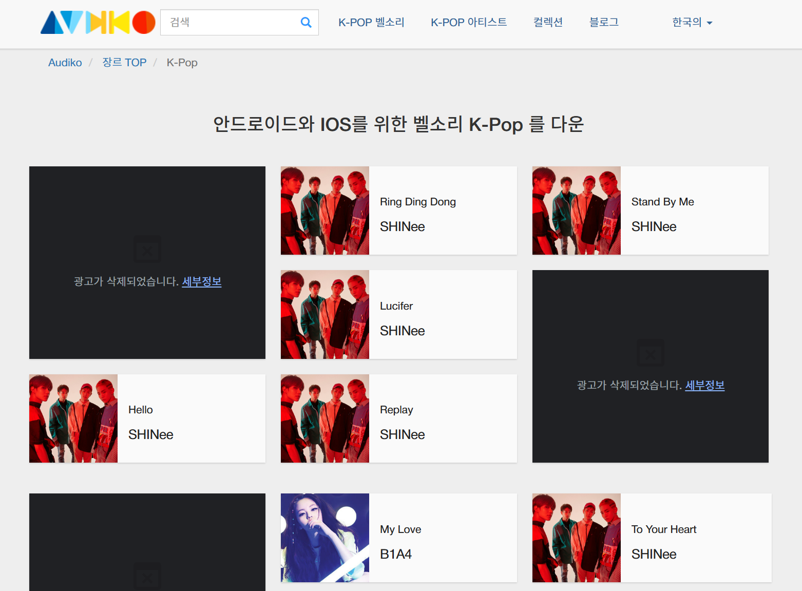 오디코에서 안드로이드IOS 휴대폰을 위한 무료 mp3 벨소리 K-Pop 다운